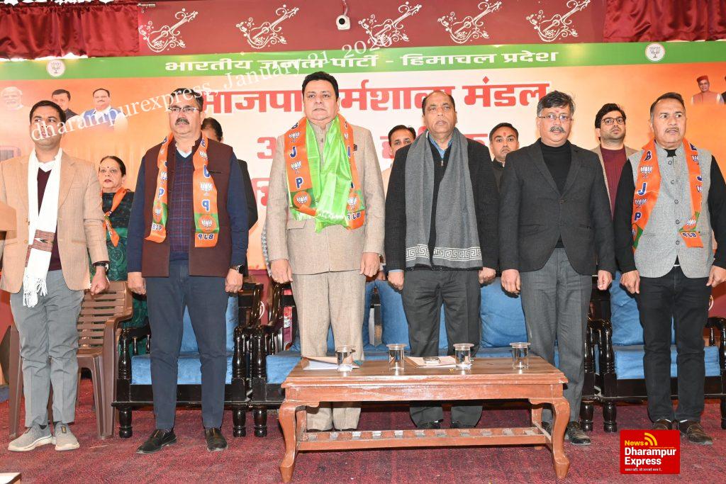 उन्होंने विधायक सुधीर शर्मा का उदाहरण देते हुए कहा कि जहां मान-सम्मान न हो, वहां ज़लालत झेलने का कोई अर्थ नहीं है, इसलिए स्वाभिमानी नेता आज भाजपा के साथ कंधे से कंधा मिलाकर चल रहे हैं। ठाकुर ने विकास के दावों की पोल खोलते हुए कहा कि आज न केवल विपक्ष बल्कि सत्तापक्ष के विधायकों के क्षेत्रों में भी काम ठप पड़े हैं, जिसका प्रत्यक्ष उदाहरण नगरोटा बगवां है जहाँ पूर्व कार्यकाल में करोड़ों के काम हुए थे पर आज सन्नाटा है। उन्होंने चेतावनी दी कि कांग्रेस का राम नाम का विरोध ही उसे पाताल की ओर ले जाएगा। कार्यकर्ताओं में जोश भरते हुए उन्होंने आह्वान किया कि वे एकजुट होकर सरकार की विफलताओं को जन-जन तक पहुँचाएं, क्योंकि जनता अब इस ‘मित्रों की सरकार’ से त्रस्त हो चुकी है और परिवर्तन का मन बना चुकी है। इस अवसर पर उनके साथ पूर्व मंत्री एवं धर्मशाला से विधायक सुधीर शर्मा, विधायक कांगड़ा पवन काजल, पूर्व विधायक अरुण कुमार कुक्का, पूर्व विधायक धर्मशाला विशाल नैहरिया, भाजपा नेता संजय शर्मा, राकेश शर्मा, जिला अध्यक्ष सचिन शर्मा, पूर्व जिला अध्यक्ष चंद्र भूषण नाग, विश्व चक्षु भी उपस्थित रहे।