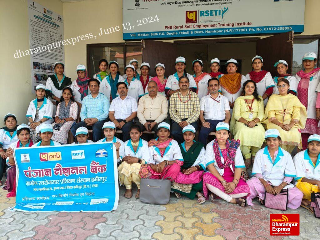 मट्टनसिद्ध स्थित पंजाब नेशनल बैंक ग्रामीण स्वरोजगार प्रशिक्षण संस्थान (आरसेटी) हमीरपुर में तहसील नादौन के गांव भरयाल की महिलाआंे के लिए नरम खिलौना निर्माण एवं विक्रेता प्रशिक्षण कार्यक्रम आयोजित किया गया। इस दौरान महिलाओं को नरम खिलौने बनाने और इनके विक्रय के संबंध में प्रशिक्षण प्रदान किया गया। प्रशिक्षण कार्यक्रम के समापन अवसर पर पंजाब नेशनल बैंक के हमीरपुर मंडल के प्रमुख अरविंद सरोच ने मुख्य अतिथि के रूप में शिरकत की।